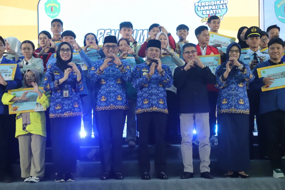 Gubernur Rudy Mas’ud memberikan penyerahan simbolis UKT Gratispol kepada 53 perwakilan mahasiswa dari berbagai Perguruan Tinggi Negeri dan Swasta (PTN/S) di Kaltim.